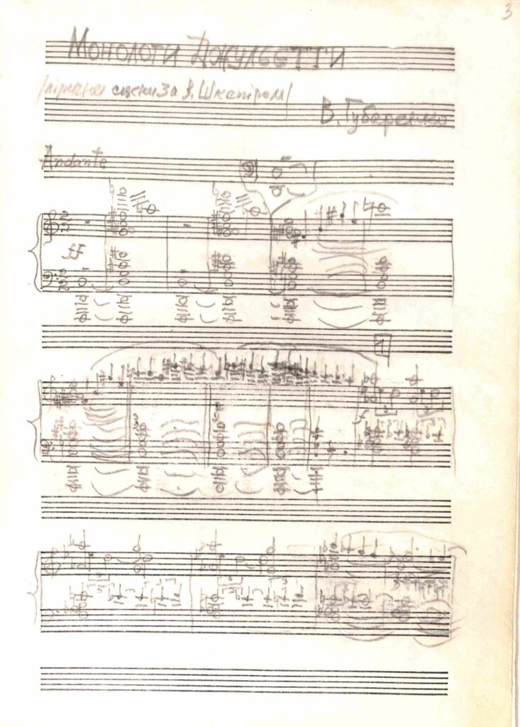 Губаренко В.С. Монологи Джульєтти. Ліричні сцени за В.Шекспіром. Автограф. ЦДАМЛМ України, ф.787, оп.1, од.зб.8, акр.3