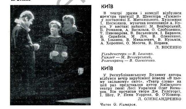 Київ. «Гамлет», реж. Е. Митницький (1985)