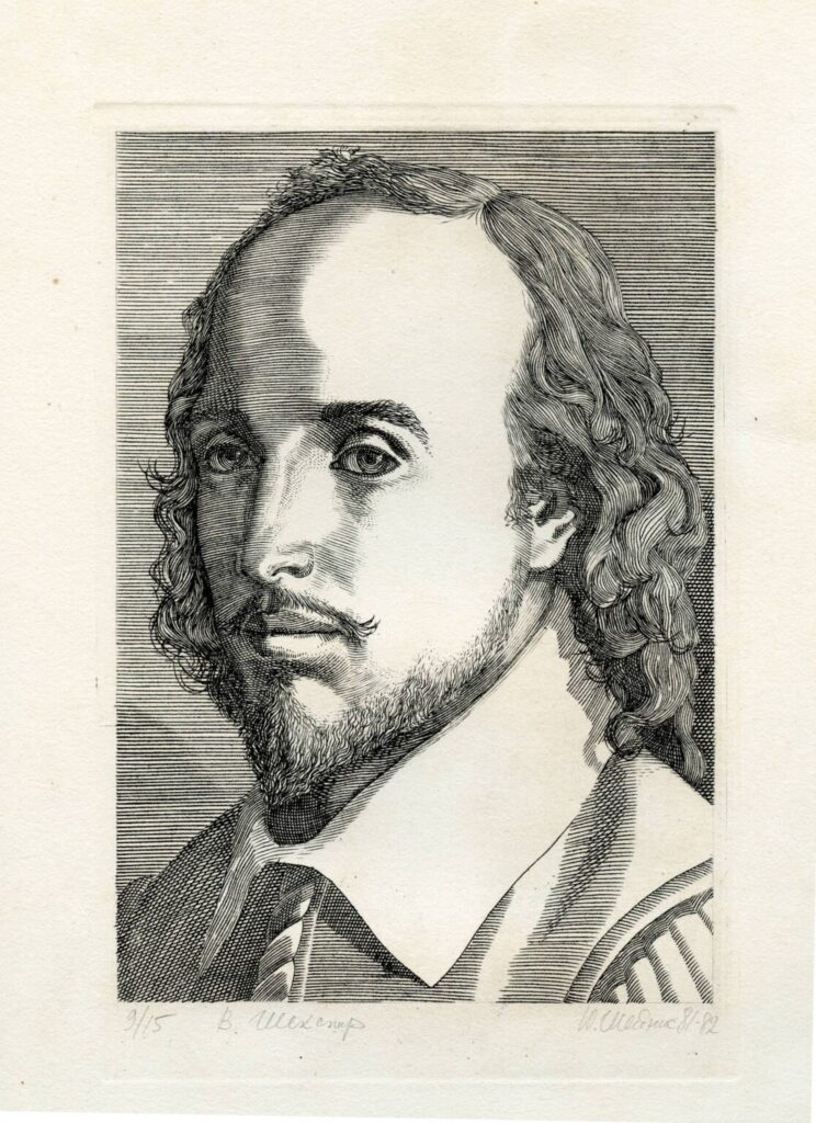Ю.П. Шейніс. Портрет В. Шекспіра. Гравюра на міді. 1981-1982 рр. ЦДАМЛМ України, ф. 700, оп. 1, од. зб. 522, арк. 2.