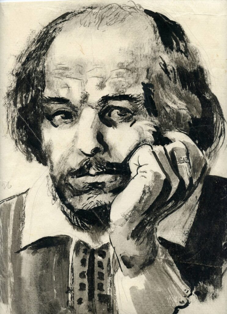 О.М. Довгаль. Портрет В. Шекспіра. Пап., туш. 1946 р. ЦДАМЛМ України, ф. 214, оп. 1, од. зб. 46, арк. 3.